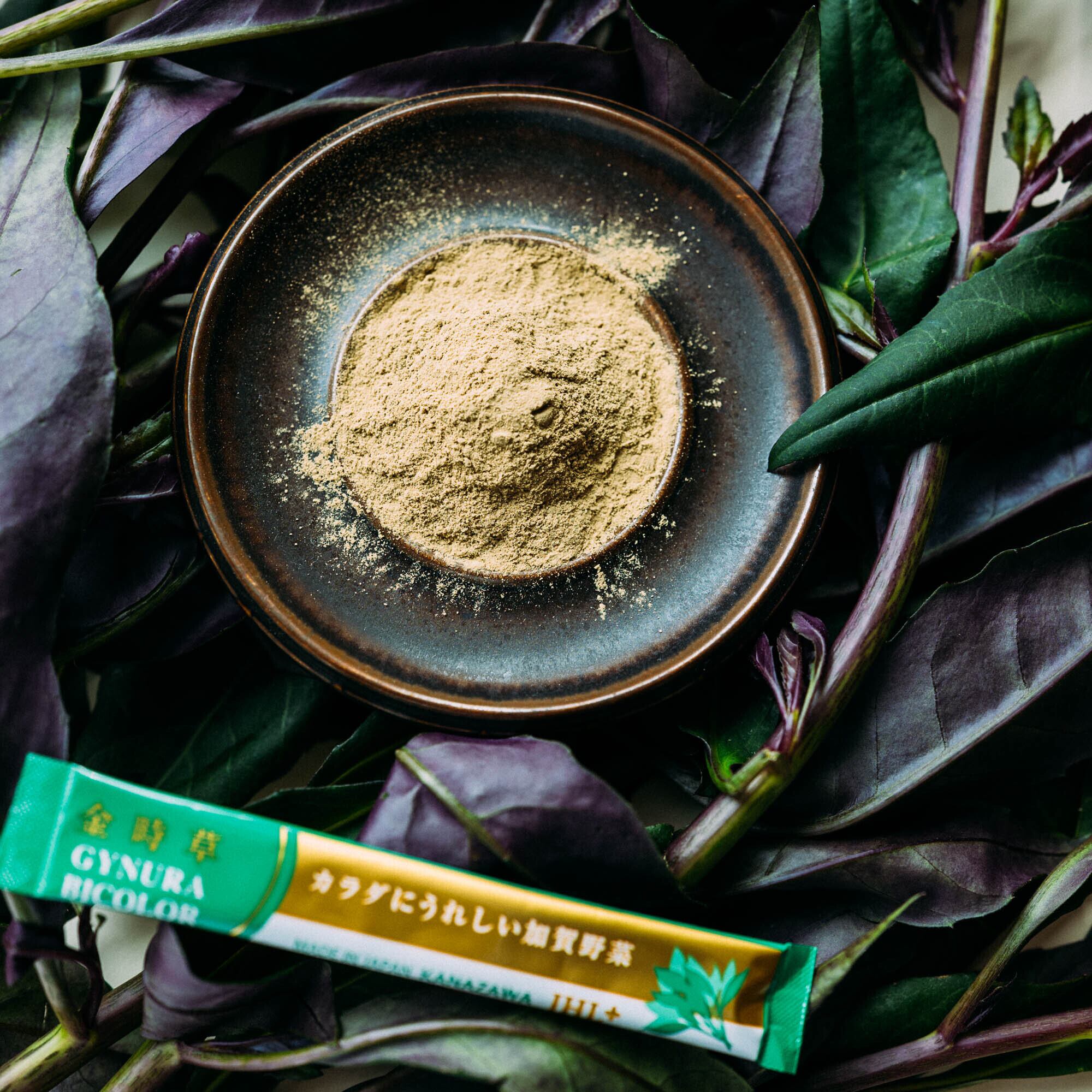 石川県で環境にやさしい農法により育てられた金時草(キンジソウ)を、乾燥粉末にして100%使用。