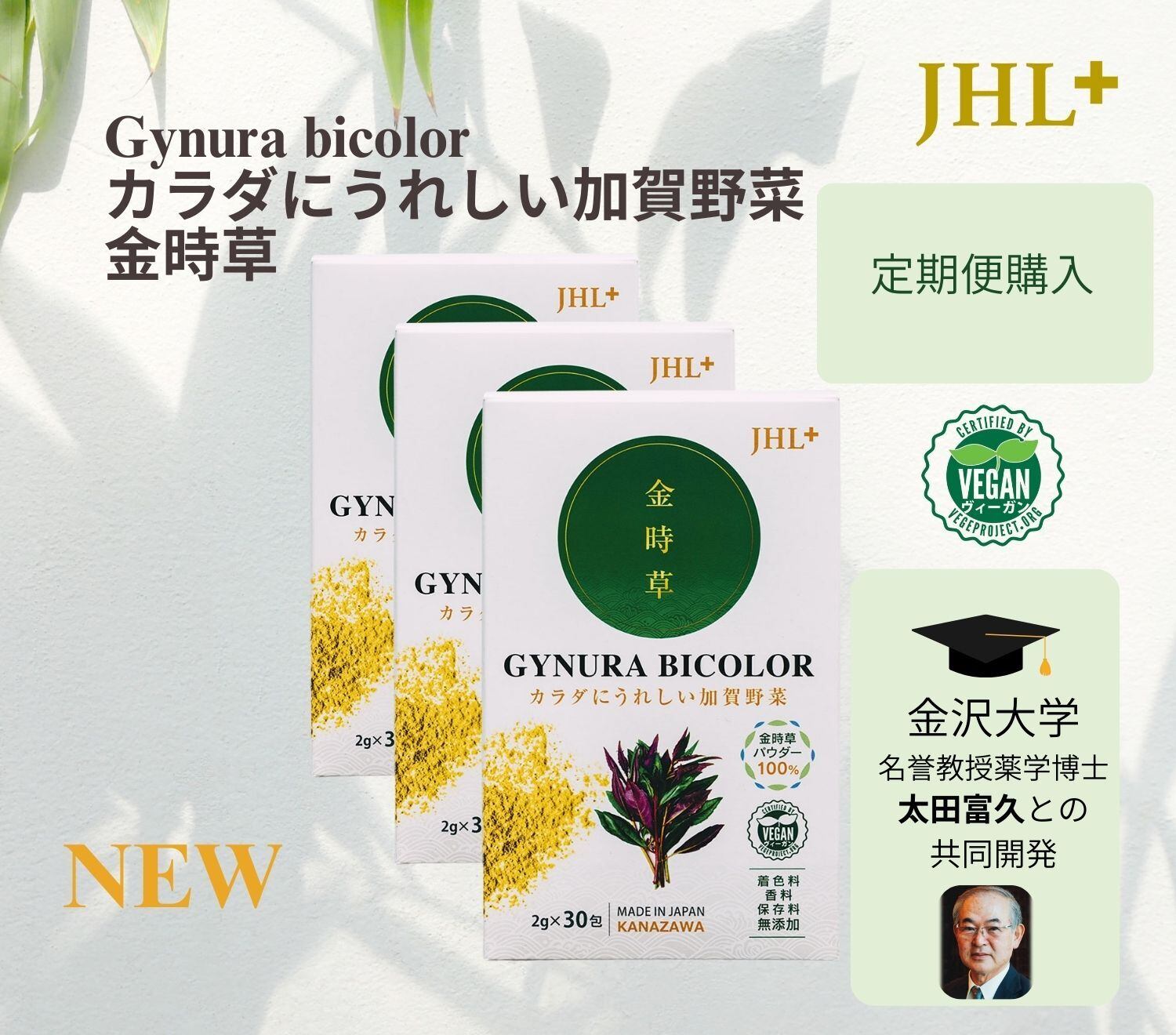 金沢大学名誉教授・薬学博士 太田富久氏とJHLの共同開発により生まれた本商品は、血糖値の低下に関する研究結果をもとに開発され、特許も取得済み。